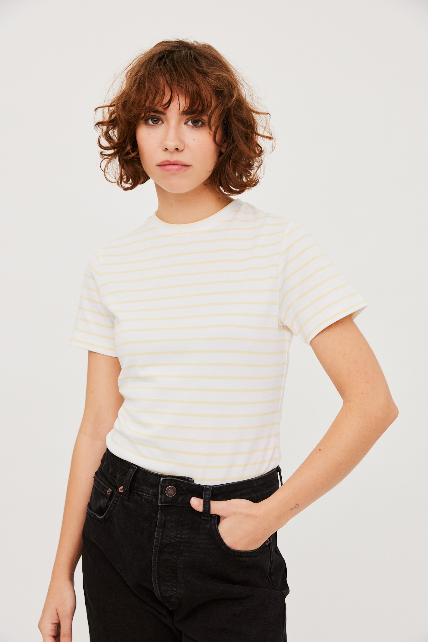 Roundneck T-shirt Pale Yellow Stripe