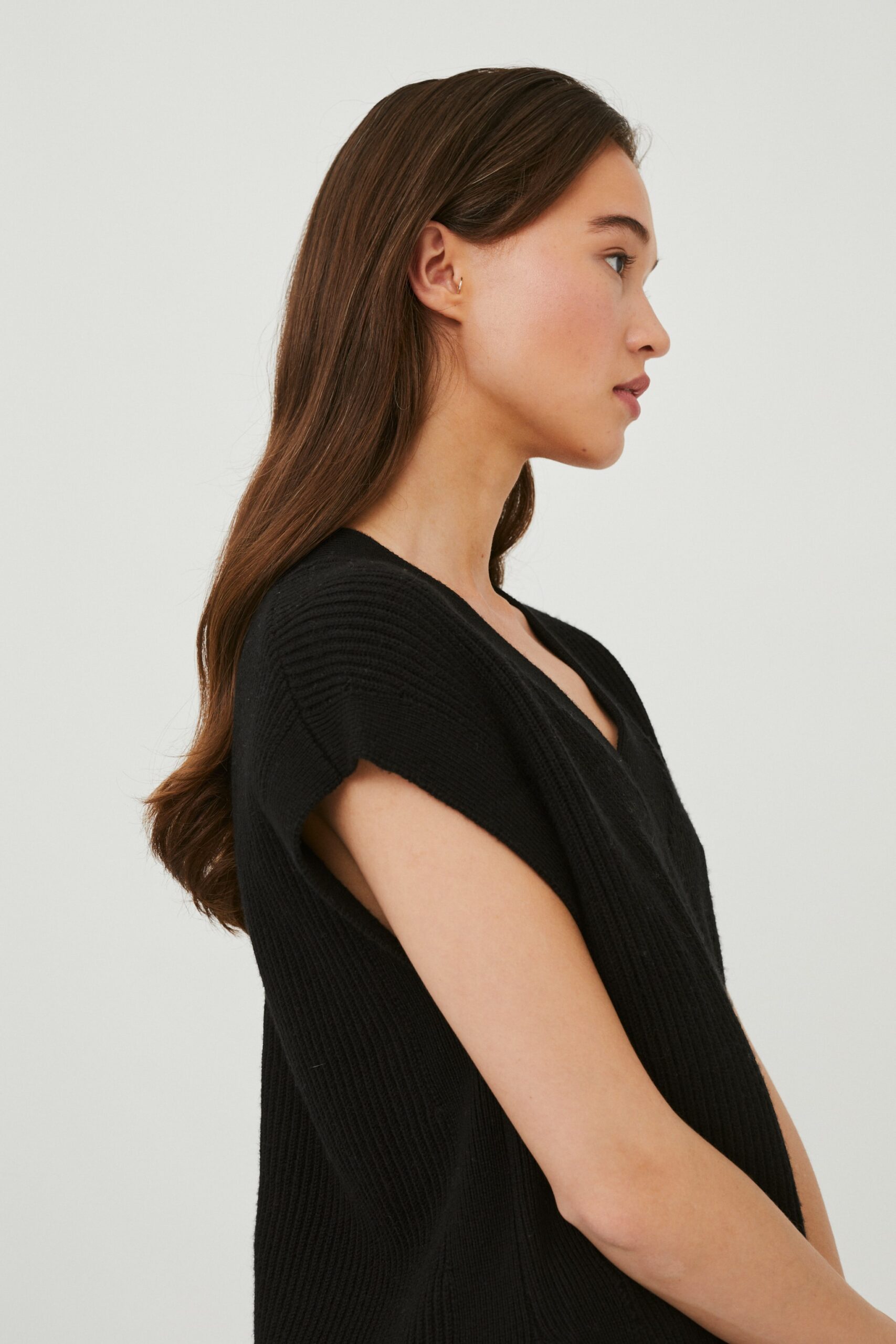 The Hedvig Knitted Vest, perfect for layering on brighter days. Layer over an oversized t-shirt for a relaxed look or over a crisp shirt for an effortless yet chic outfit. The Hedvig vest is the ultimate piece to create endless styling options in your essential wardrobe.