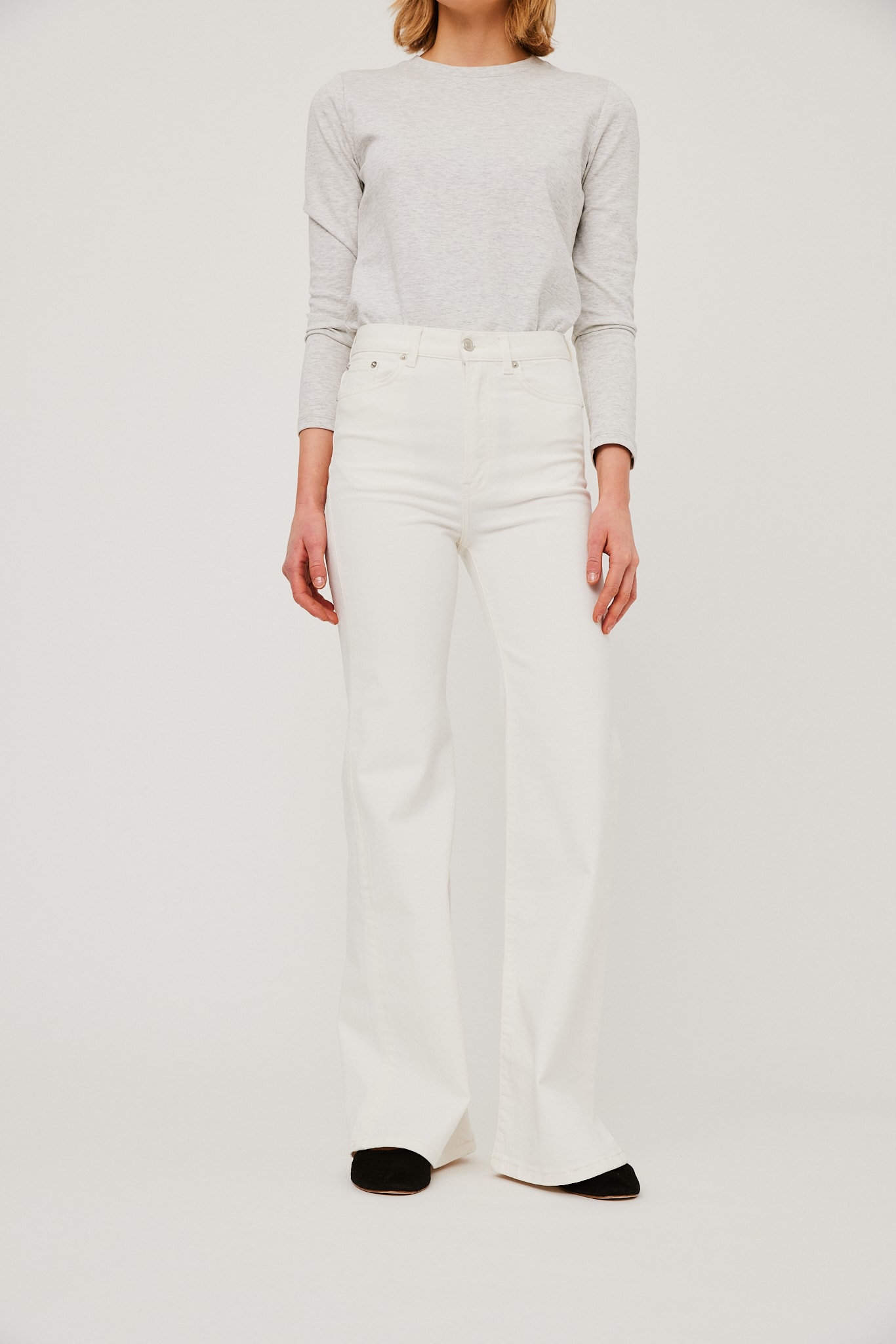 Julie Josephine featuring the Swedish brand Jeanerica. Jeanerica makes contemporary premium denim, with high quality and focus on comfort. Pyramid is Jeanerica’s contemporary 5-pocket flared jeans. A super high-rise and flared leg from the thigh creates an elegant silhouette with a bold leg.