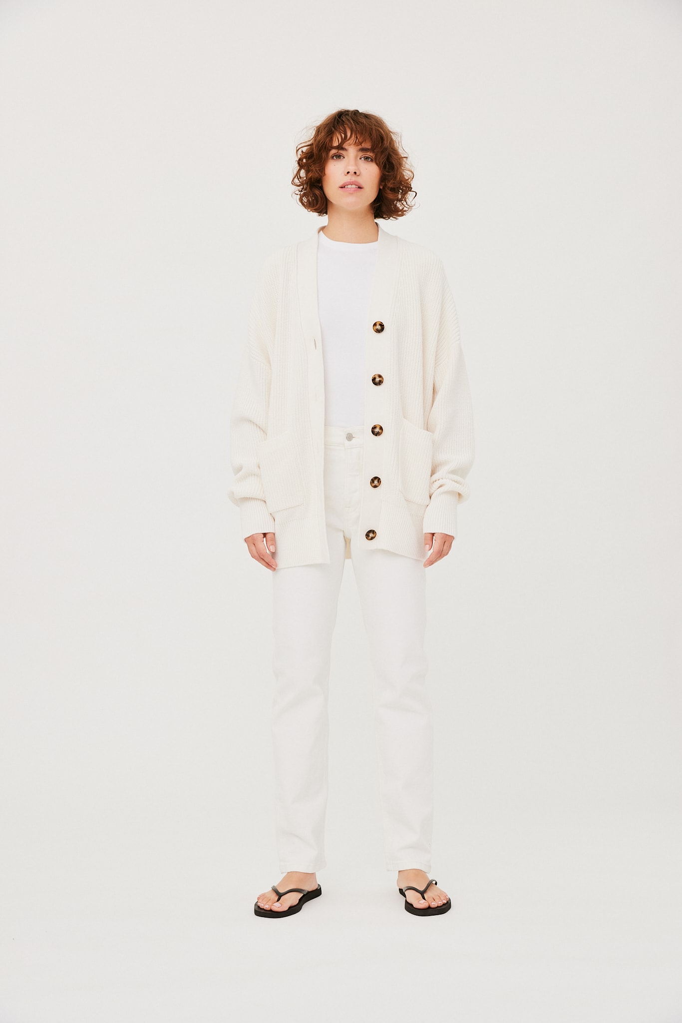 Knitted cardigan featuring a v-neckline and ribbed trims. The ultimate throw-on-and-go staple to invest in.