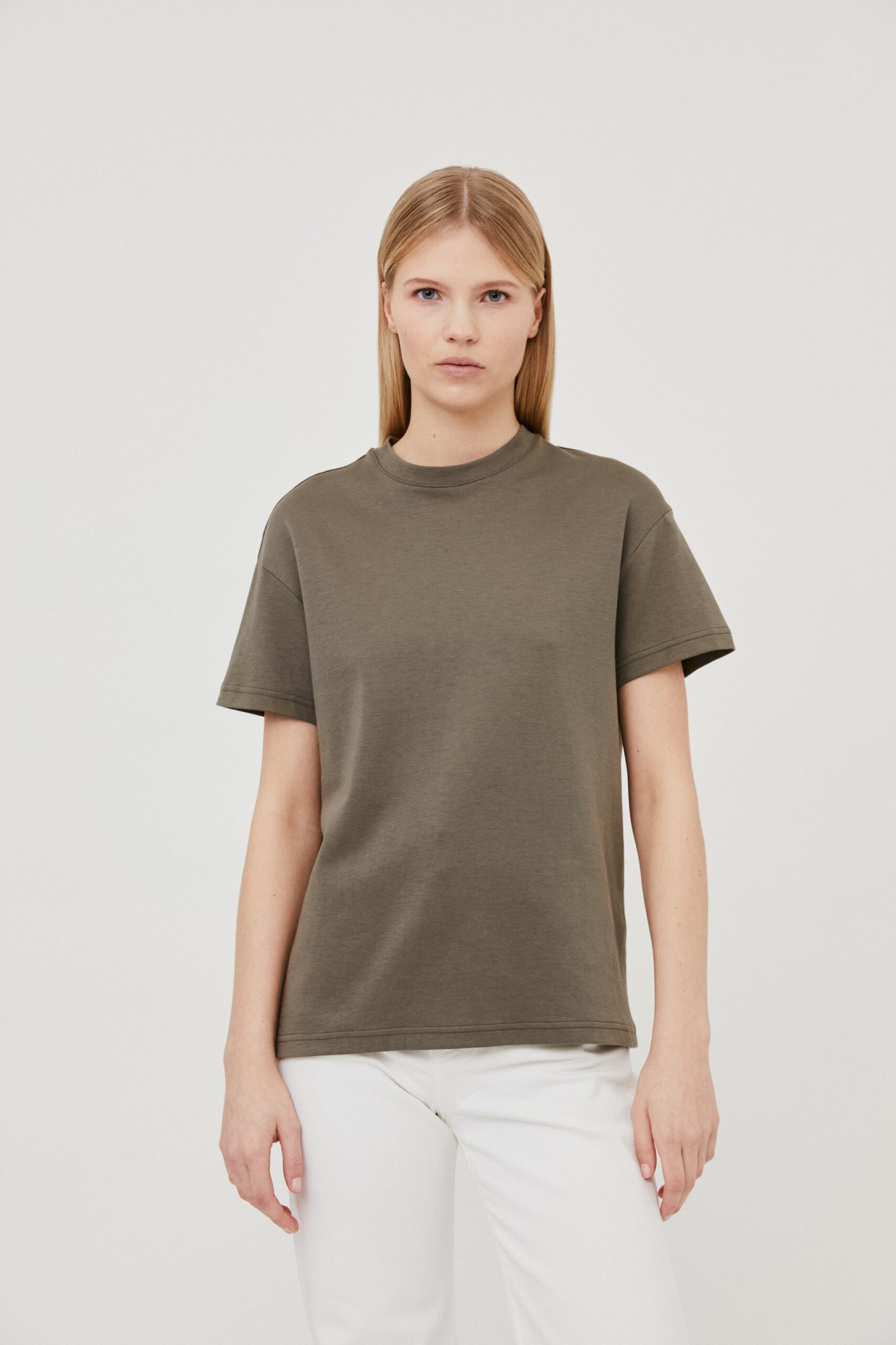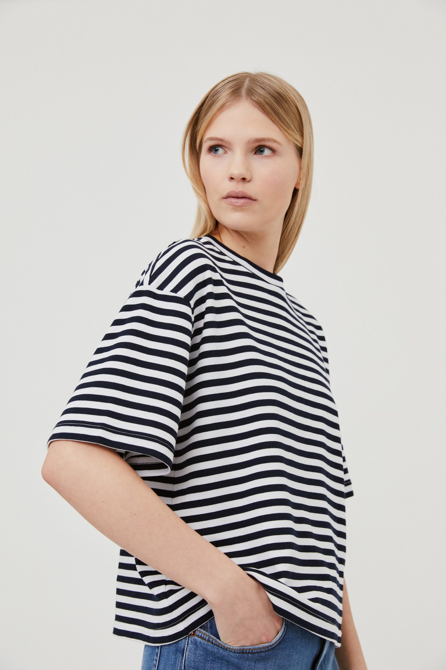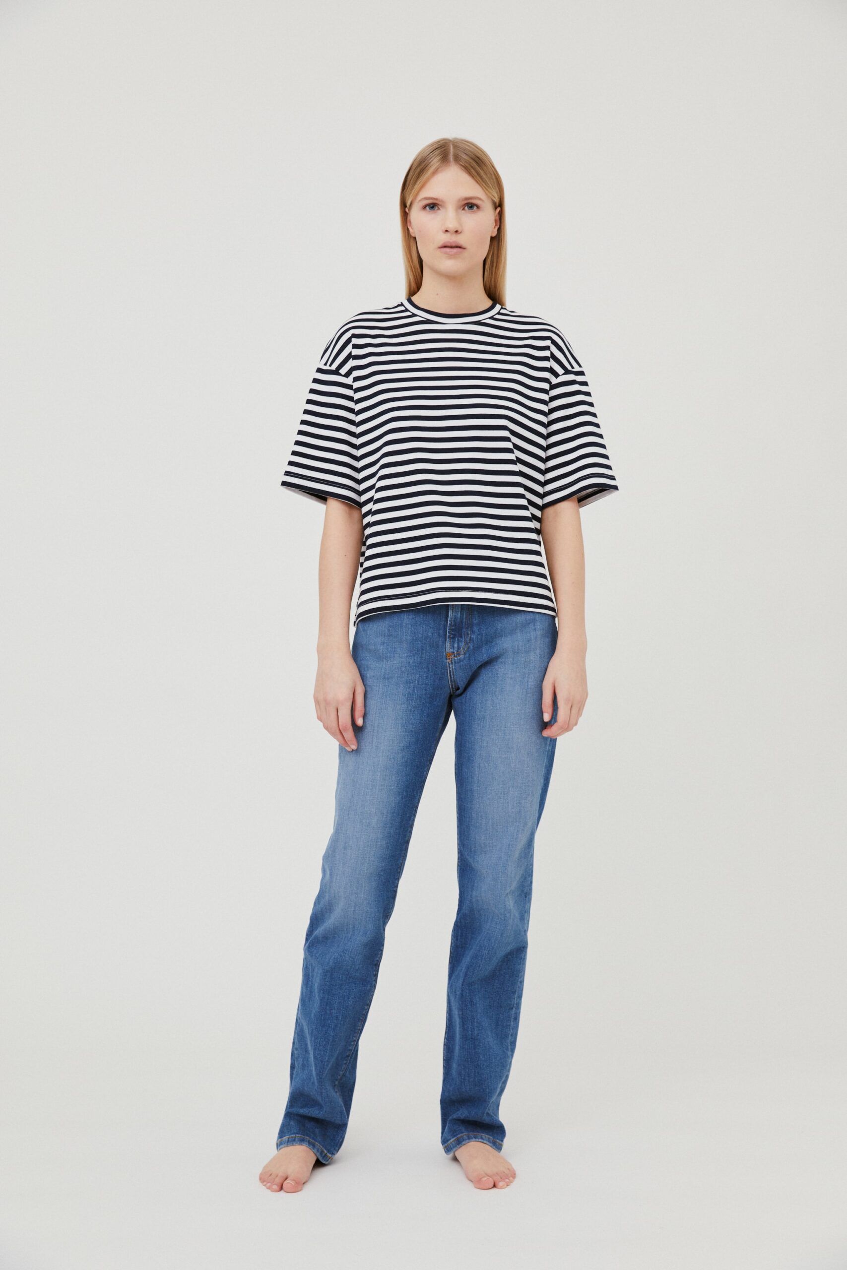 Stella T-shirt; crafted from our signature Italian cotton blend jersey with a slightly oversized and cropped fit. Pair with Christina Trouser and flip flops for the ultimate relaxed summer look.
